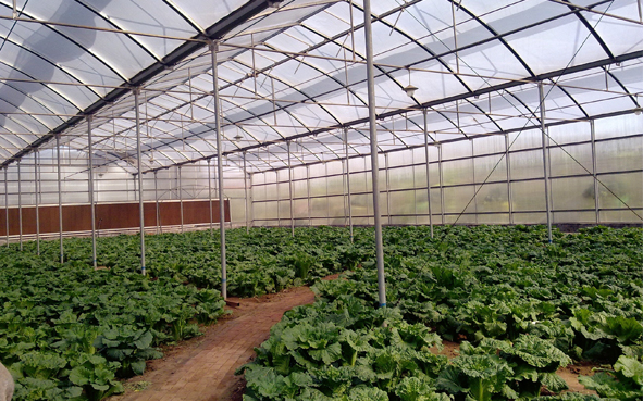 日光溫室是依據溫室加溫設備的有無而分的一種溫室類型,即不加溫溫室。主要依靠日光的自然溫熱和夜間的保溫設備來維持室內溫度。一般采用較簡易的設施,充分利用太陽能,在寒冷地區一般不加溫進行蔬菜越冬栽培,而生產新鮮蔬菜的栽培設施日光溫室具有鮮明的中國特色。是我國獨有的設施。日光溫室的結構各地不盡相同,分類方法也比較多。按墻體材料分主要有干打壘土溫室,磚石結構溫室,復合結構溫室等。按后屋面長度分,有長后坡溫室和短后坡溫室;按前屋面形式分,有二折式,三折式、拱圓式、微拱式等。按結構分,有竹木結構、鋼木結構、鋼筋混凝土結構、全鋼結構、全鋼筋混凝土結構、懸索結構,熱鍍鋅鋼管裝配結構。