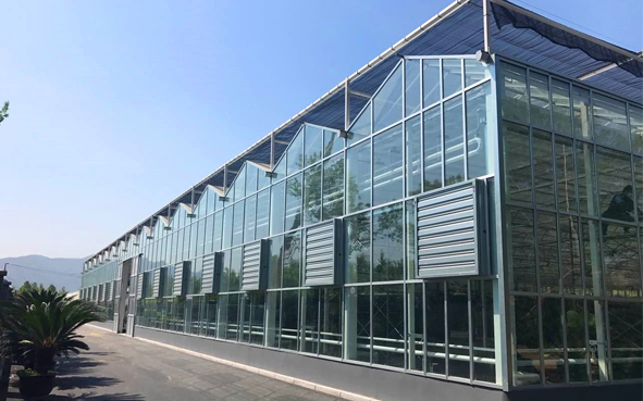 玻璃連棟溫室指以玻璃(單?;蛘咧锌詹AВ┳鞑晒獠牧系臏厥?,屬于智能溫室大棚的一種 ,在栽培設施中,;連棟玻璃溫室作為使用壽命最長的一種形式, 適合于多種地區和各種氣候條件下使用。