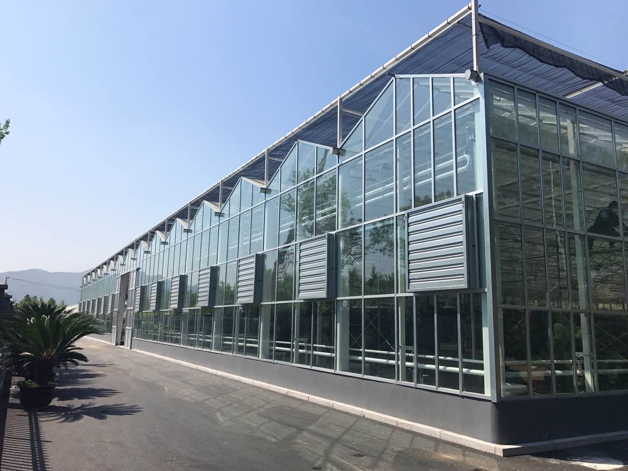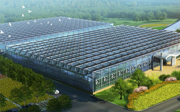 連棟溫室是智能溫室(智能溫室也稱自動化溫室,是指配備了由計算機控制的可移動天窗,遮陽系統,保溫系統,濕簾/風機降溫系統,噴灌系統等自動化設施,基于農業溫室環境的高科技“智能”溫室)的一種。